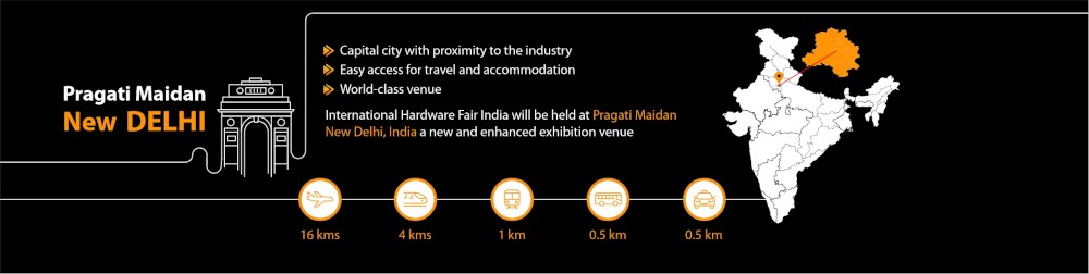 International Hardware Fair India takes place at Bharat Mandapam (Pragati Maidan), New Delhi, an easily reachable location from private vehicle and public transport.